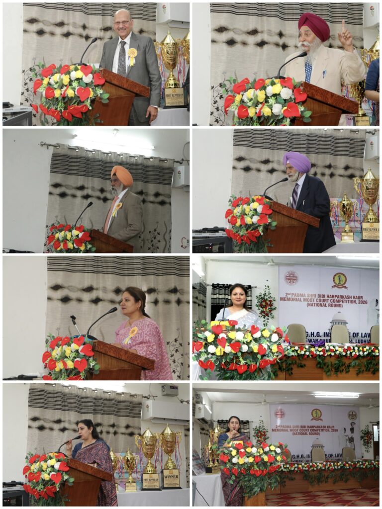The two-day 2nd Padma Shri Bibi Harprakash Kaur Memorial Moot Court Competition, 2026 (National Round) concluded successfully at G.H.G. Institute of Law under the aegis of SGHG Ujagar Hari Trust on 28th February and 1st March 2026.The event was organized by the Moot Court Committee under the leadership of President S. Kripal Singh Bhathal, Secretary S. Pritam Singh Johal (PCS ADCG Retd.), Manager Dr. G.S. Grewal, Members S. Birinder Singh Sidhu, Dr. Harmail Singh Sidhu, S. Devinder Singh Mann, S. Jarnail Singh Dhillon, and Principal Prof. (Dr.) Shweta Dhand. The competition was coordinated by Dr. Neelam, Dr. Jaspal Kaur, Ms. Neha Minocha, and Ms. Charu Joshi.A total of 34 teams (102 participants) from across the country competed; 12 advanced to the semi-finals and 4 reached the finals. The semi-final judges were Dr. Ivneet Walia, Prof. (Dr.) Aarti Puri, Mr. Ravneet Singh Joshi, Advocate Vipin Saggar, Advocate Gagan Bedi, and Advocate Karan Singh. The final round was adjudged by Justice Mahavir Singh Chauhan (Retd.), Ms. Preeti Sahni, and Prof. Rajinder Kaur.GNDU Regional Campus, Gurdaspur won the competition (₹21,000), while PUSSGRC, Hoshiarpur secured the Runner-up position (₹11,000). Best Mooter award went to Prithvi Raj (Amity University Mohali) (₹5,100), and Best Memorial was awarded to Faculty of Law, Guru Nanak Dev University (₹5,100). Consolation prizes were secured by UIL, PURC, Ludhiana and Amity University Mohali.In his concluding address, Secretary S. Pritam Singh Johal congratulated the winners and thanked the judges. Principal Prof. (Dr.) Shweta Dhand appreciated the coordinators and commended student coordinators Dakshita Jain, Prabhjot Kaur, Avneet Kaur, Adhyayan, and Jasmeet Singh. The proceedings were efficiently conducted by Ms. Charu Joshi.